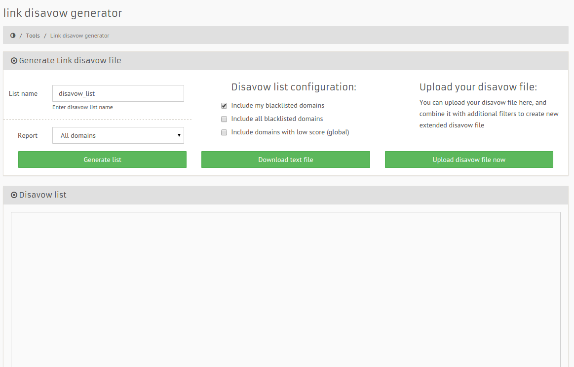 - Disavow List generator: Simple disavow list creation based on previously marked bad links. There is also a possibility of combining your existing list of links with the ones from the database.