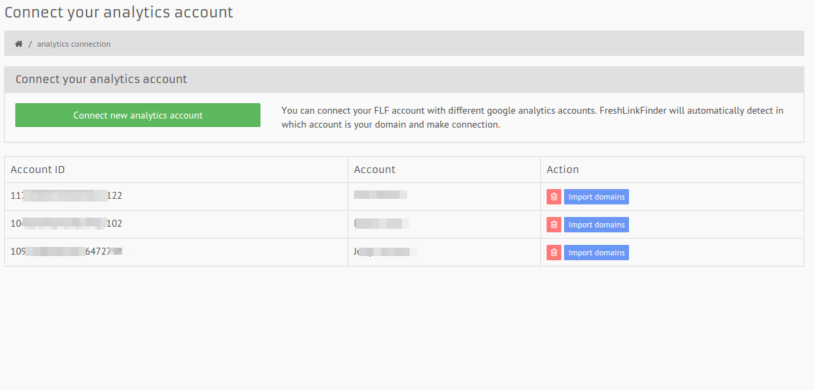 - Google analytics: You can connect your Fresh link finder with your Google analytics account and pull data from there as well.