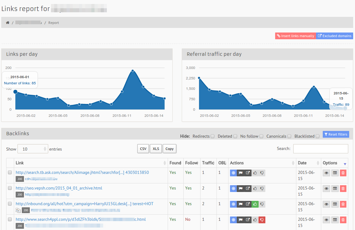 In addition to finding fresh links, with us you will build a database of all existing links and thus be able to easily create reports on new or old links for you or your clients. You can also easily filter the links that you choose to display in the report.